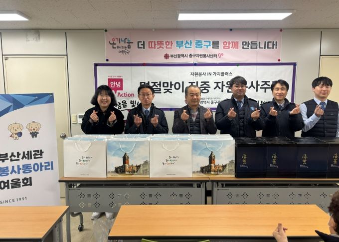 (포탈뉴스통신) 부산 중구자원봉사센터는 2월 12일 부산세관 여울회(회장 이철)와 함께 관내 홀로 어르신 및 취약계층 30가구를 대상으로 설 명절맞이 사랑의 후원물품 나눔 활동을 진행했다.