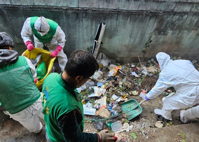 이번 활동은 주거지 내 이동이 어려울 정도로 각종 생활 쓰레기가 적재된 상태로 악취와 해충 등 위생 문제를 겪고 있는 주거 위기 가구를 돕기 위해 마련됐다. 현장에는 구청 관계자와 상중이동 행정복지센터, 서구자원봉사센터, 새마을회 등 30여 명이 함께 힘을 모았다.