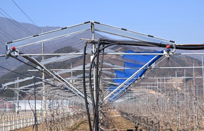 이번 사업은 지역내 사과 농가에 저온·서리 피해 예방을 위한 차광시설, 미세살수장치, 방상팬 등 이상기상에 대응할 수 있는 장비를 지원하는 사업이다.