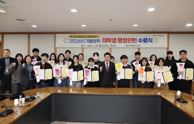 (포탈뉴스통신) 대구 중구는 지난 20일 구청 상황실에서 ‘2026년 겨울방학 대학생 행정인턴 수료식’을 개최했다.