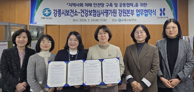 (포탈뉴스통신) 강릉시보건소(보건소장 권혁여)는 지난 24일 건강보험심사평가원 강원본부(본부장 정선호)와 지역사회 치매 안전망 구축 및 공동 협력을 위한 업무협약을 체결했다.