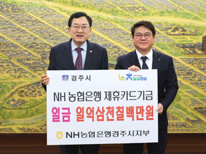 (포탈뉴스통신) 경주시는 25일 시청 대외협력실에서 NH농협은행 경주시지부(지부장 황대화)로부터 지난해 제휴카드 사용에 따른 적립기금 1억 3,715만 5,240원을 전달받았다.