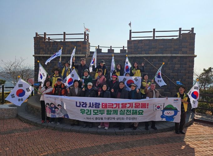 이번 행사에는 주민자치회와 통장협의회, 지역 주민 등 50여 명이 참여해 이순신광장로와 중앙로 등 관내 주요 도로변을 비롯해 오포대, 달빛갤러리, 천사벽화골목, 진남관 좌수영다리 등 주요 관광지에 태극기를 게양하며 거리를 태극기로 물들였다.