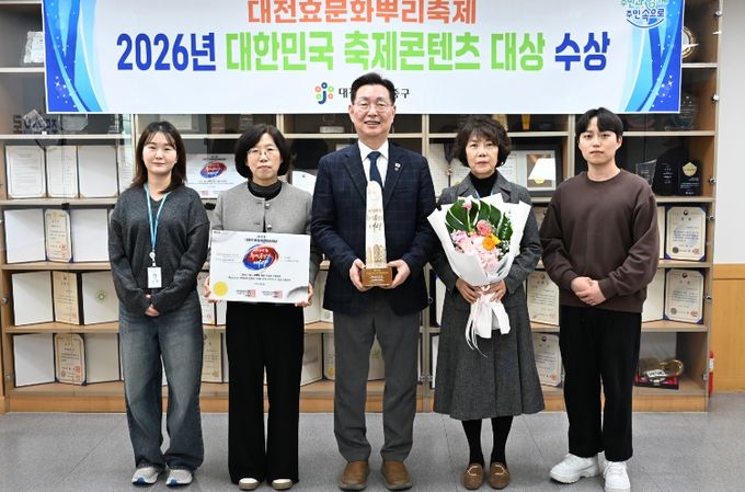 (포탈뉴스통신) 대전 중구는 지난 24일 서울 피스앤파크 컨벤션센터에서 열린 2026년 제14회 대한민국 축제콘텐츠 대상 시상식에서 대전효문화뿌리축제가 축제 문화유산·역사 부문 대상을 수상했다고 밝혔다.