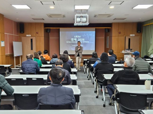 퇴직자 및 지역 주민 40여 명이 참가한 가운데 2026년 주요 경제 전망과 주민들이 꼭 알아야 할 재테크 전략에 대한 주제로 진행됐다.