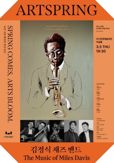 (포탈뉴스통신) 대구문화예술진흥원 대구문화예술회관은 3월 5일 오후 7시 30분 대구문화예술회관 비슬홀에서 김정식 재즈 밴드 ‘The Music of Miles Davis’를 선보인다.