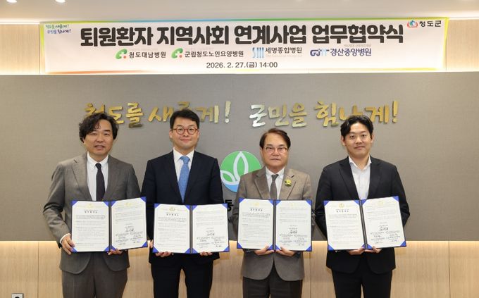 (포탈뉴스통신) 청도군은 27일 오후 2시 군수실에서 관내·인근 의료기관과 '통합돌봄 퇴원환자 지역사회 연계사업' 추진을 위한 업무협약을 체결했다.