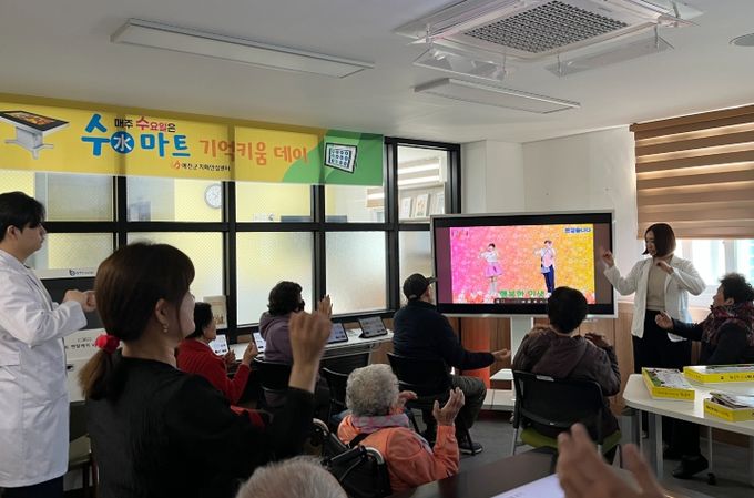 '수(水)마트 기억키움데이'는 해피테이블, 태블릿 등 다양한 스마트 기기를 활용한 체험 중심 활동으로 구성되어 어르신들이 게임을 즐기듯 자연스럽게 두뇌를 자극할 수 있어 참여도와 흥미가 높은 것이 특징이다.