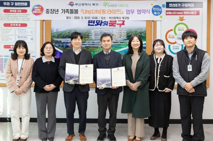 (포탈뉴스통신) 부산 북구는 4일 만덕종합사회복지관과 가족돌봄 중장년 가구를 지원하는 ‘Ling:Life(링:라이프)’ 사업 추진을 위한 업무협약을 체결했다고 밝혔다.