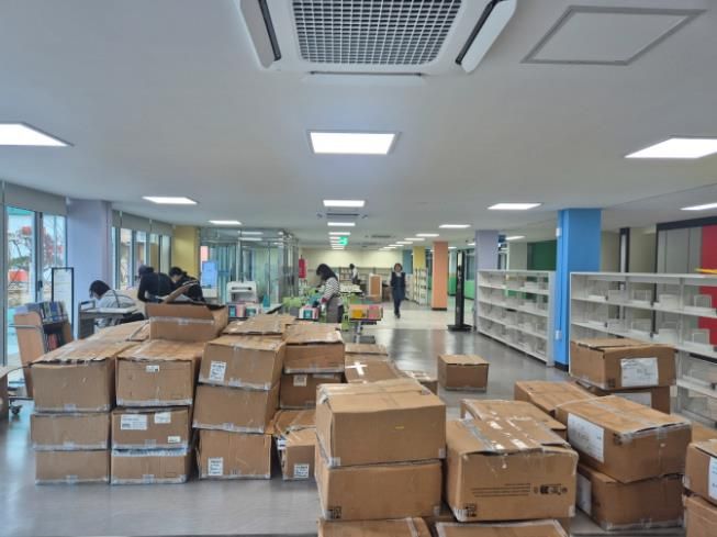 이번 지원은 그린스마트미래학교 조성 공사 기간 동안 박스에 포장되어 있던 도서를 서가에 정리하고 정배열하는 작업을 지원함으로써 교원의 업무 부담을 줄이고 도서실 환경을 개선하기 위해 마련됐다.