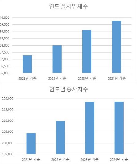 특히, 2021년과 비교하면 사업체 수는 6.7%, 종사자 수는 6.9% 증가하며 지역경제가 점진적인 회복세에 들어선 것으로 분석된다.