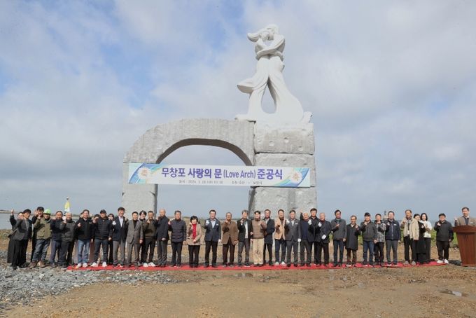 조형물의 작품명은 국민 참여를 통해 선정된 ‘무창포 사랑의 문(Love Arch)’으로, 석대도와 육지를 잇는 바닷길의 관문이라는 상징성을 담고 있다.