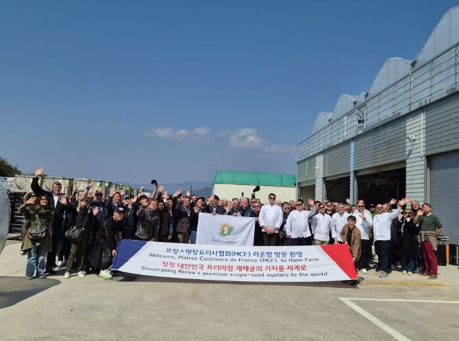 (포탈뉴스통신) 세계 최고의 미식 권위를 자랑하는 프랑스명장요리사협회(Maîtres Cuisiniers de France) 소속 셰프 180여 명을 포함한 관계자 200여 명이 2026년 3월 21일 경남 거제시의 개체굴 생산 현장인 ‘라온팜’(대표 엄성)을 방문했다.