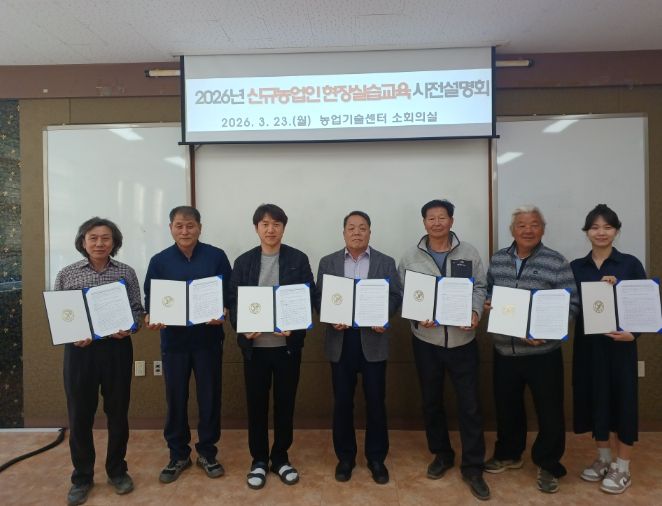 (포탈뉴스통신) 증평군농업기술센터는 지난 23일 귀농 연수생 및 선도 농가와 2026년 신규농업인 현장실습 교육 약정서를 체결하고 사전교육을 진행했다고 밝혔다.