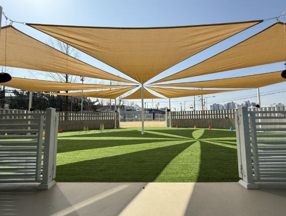 구는 우선 인조잔디가 깔린 프로그램 공간 전반에 대형 그늘막을 설치했다. 이를 통해 한여름 뜨거운 햇볕을 차단하고, 여름철 반려견의 발바닥 화상 위험을 줄이는 등 이용 환경을 대폭 개선했다.