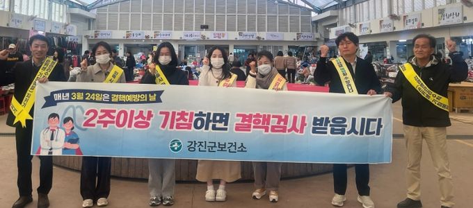 (포탈뉴스통신) 강진군이 3월 24일 ‘결핵 예방의 날’을 맞아 군민들의 결핵 예방수칙 실천을 독려하고 결핵 조기검진의 중요성을 알리고자 지난 24일 강진읍 시장에서 결핵 예방·퇴치 캠페인을 실시했다.