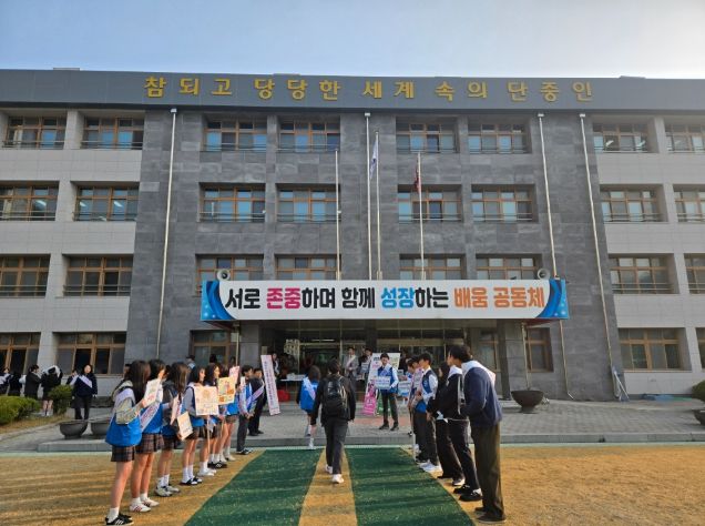 (포탈뉴스통신) 충청북도단양교육지원청은 3월 26일(목) 단양중학교에서 생명존중 의식을 높이고 안전한 학교를 만들기 위한 학교폭력 예방 캠페인을 진행했다.