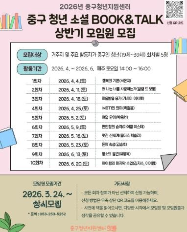 이번 프로그램은 매주 토요일 오후 2시부터 4시까지 진행되며, 청년들이 책을 매개로 서로의 생각과 경험을 나누고 다양한 관점을 공유할 수 있도록 마련됐다.