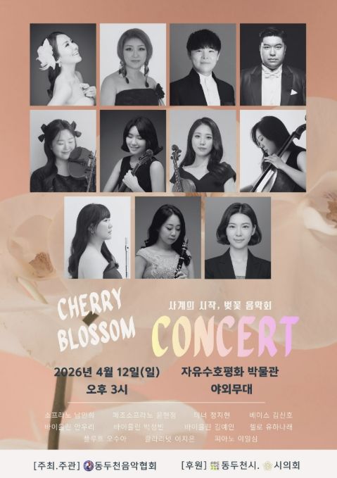‘사계의 시작, 벚꽃 음악회’라는 부제로 열리는 이번 공연은 사단법인 한국음악협회 동두천시지부가 주관한다. 한국음악협회 동두천시지부는 지역 전문 음악인들의 화합을 이끌며 수준 높은 클래식 공연을 기획하고, 시민들에게 깊이 있는 문화 향유의 기회를 제공하는 지역 대표 예술 단체이다.