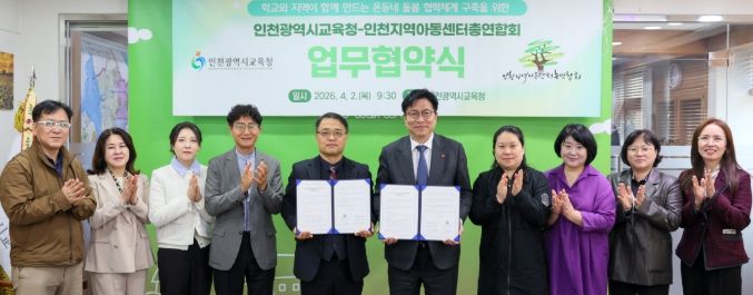 (포탈뉴스통신) 인천광역시교육청은 지난 2일, 인천지역아동센터총연합회(회장 신준범)와 ‘학교와 지역이 함께 만드는 온동네 돌봄 협력체계 구축’을 위한 업무협약을 체결했다.