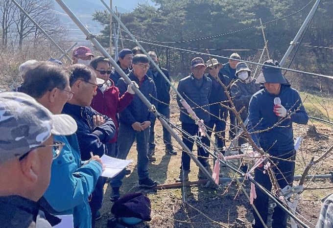 이번 교육은 지난 1월 실시한 동계 전정 현장 교육에 이어 충북 음성군 선도 농가 송찬의 강사를 초빙해 교육의 연속성과 현장 실용성을 높이기 위해 마련됐다.