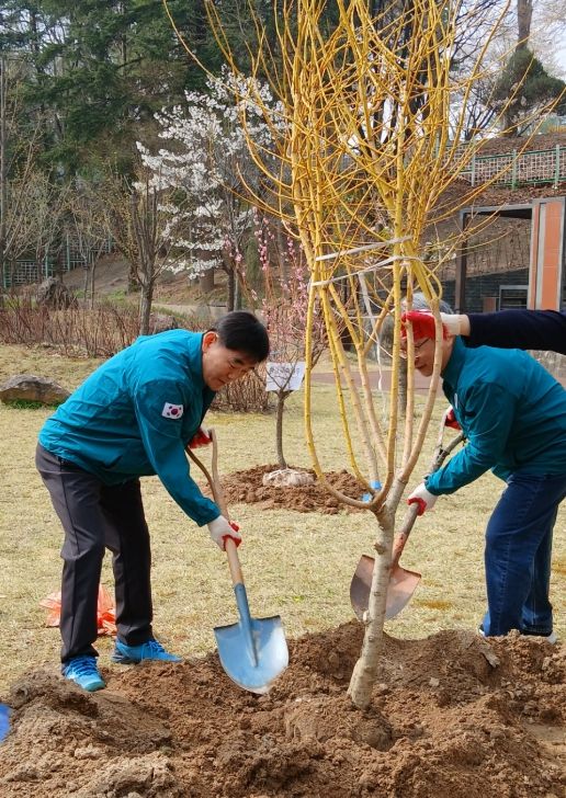 직원 13명이 참여해 화살나무, 남천, 회양목, 라일락, 매화나무, 블루애로우 등 300여 주를 식재하며 방문객이 자연을 체감할 수 있는 생태체험 공간을 확충했다.