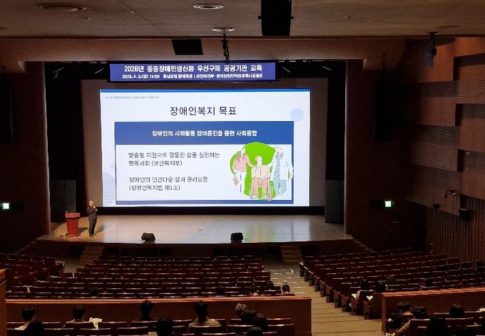 (포탈뉴스통신) 충남도는 3일 도청 문예회관에서 중증장애인 생산품 우선구매 관련 공공기관의 인식 제고 및 구매 독려를 위한 ‘2026년 공공기관 중증장애인생산품 우선구매 교육’을 실시했다.