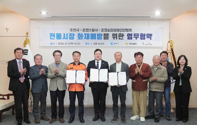 춘천시는 3일 시청 접견실에서 춘천소방서, (사)춘천상업경영인연합회와 전통시장 화재예방 업무협약을 체결했다.