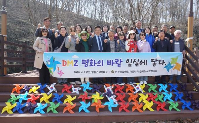 (포탈뉴스통신) 민주평화통일자문회의 임실군협의회는 지난 2일, 임실군 사선대 국민관광지에서 자문위원 30여 명이 참석한 가운데 ‘DMZ에서 고이 담아 온 평화의 바람(HOPE)’을 상징하는 바람개비를 설치하여 ‘함께걷는 평화의 바람길’을 조성했다.