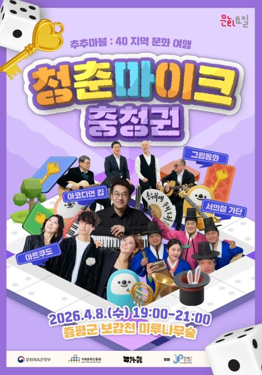 (포탈뉴스통신) 충북 증평군은 오는 8일 오후 7시 보강천 미루나무숲에서 거리공연 ‘청춘마이크’를 개최한다고 밝혔다.