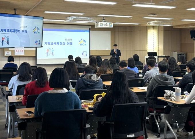 본청과 직속기관, 교육지원청 예산업무 담당자 60여 명을 대상으로 한 이 연수는 2026년도 추경예산 편성 업무를 앞두고 지방교육재정 전반에 대한 이해도 및 실무능력을 제고를 위해 마련됐다.