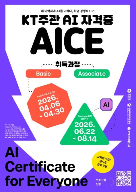 (포탈뉴스통신) 경남투자경제진흥원(원장 오재호)은 도내 청년들의 디지털 역량 강화와 취업 경쟁력 제고를 위해 AI 자격증 과정인 ‘KT AICE(AI Certificate for Everyone) 교육과정’을 운영한다고 밝혔다.
