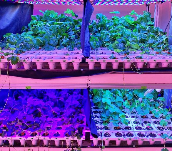 장치에는 수직농장 내 인공광원(LED)을 적용해 딸기 생육에 적합한 환경을 조성했다.