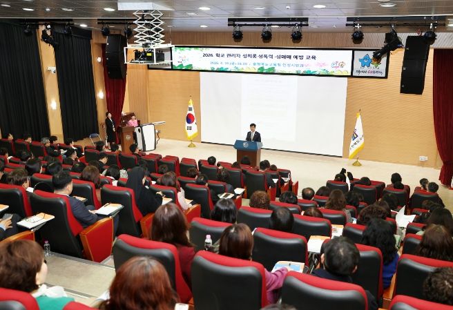 (포탈뉴스통신) 충청북도교육청은 10일, 충북교육청 사랑관 세미나실에서 청주권 교감 180명과 중부권 교장 100명 등 총 280여 명을 대상으로 '2026년 학교 관리자 성희롱・성폭력・성매매 예방 교육'을 실시했다.