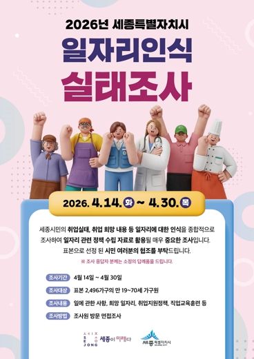 (포탈뉴스통신) 세종특별자치시가 오는 14일부터 30일까지 ‘2026 일자리인식실태조사’를 진행한다.
