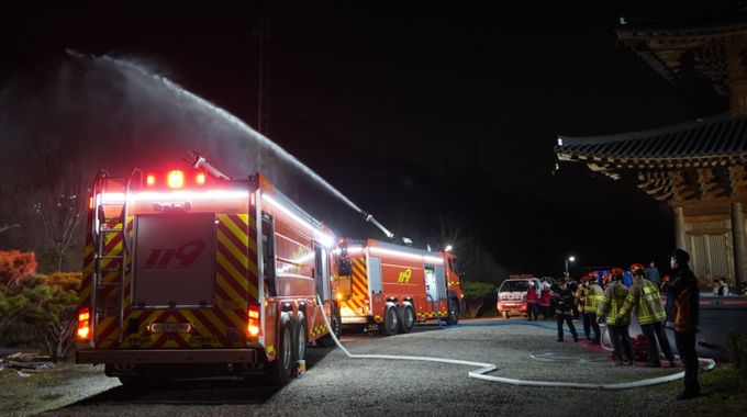 특히 대형산불 특별대책기간에 맞춰 야간 산불 발생 시 민가 등 인근 시설물을 보호하는 초동 대응 훈련에 중점을 뒀다.