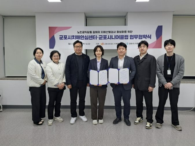 (포탈뉴스통신) 군포시치매안심센터는 4월 9일 군포시시니어클럽과 업무협약을 체결하고 노인공익활동 참여자를 대상으로 한 치매선별검사 확대에 나선다고 밝혔다.