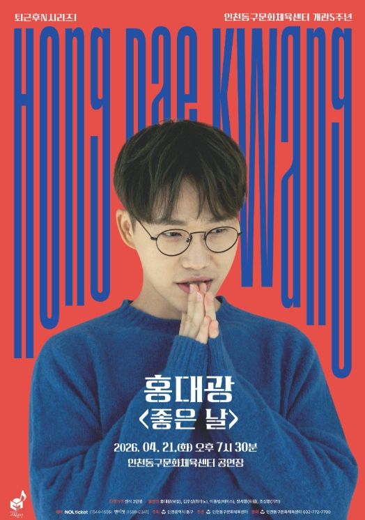 (포탈뉴스통신) 인천동구문화체육센터는 업무에 지친 직장인을 대상으로 오는 21일 오후 7시30분 홍대광의 '좋은 날' 공연을 개최한다고 밝혔다.