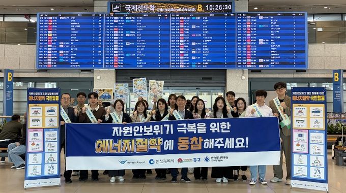 (포탈뉴스통신) 인천국제공항공사는 15일 인천공항 제1여객터미널 입국장 일대에서 인천광역시, 인천광역시 중구청, 한국에너지공단 인천지역본부 등 유관 기관과 함께‘자원안보위기 극복을 위한 대국민 에너지 절약 캠페인’을 시행했다고 밝혔다.
