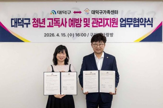 대덕구는 대덕구가족센터와 ‘청년 고독사 예방 지원사업’ 업무협약을 체결하고, 청년들의 일상 회복을 지원하기로 했다.