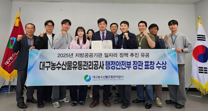 (포탈뉴스통신) 대구농수산물유통관리공사는 지역사회 양질의 일자리 창출 및 고용 개선에 기여한 공로를 인정받아 ‘지방공공기관 일자리 정책 추진 유공’ 분야 행정안전부 장관 표창을 수상했다.