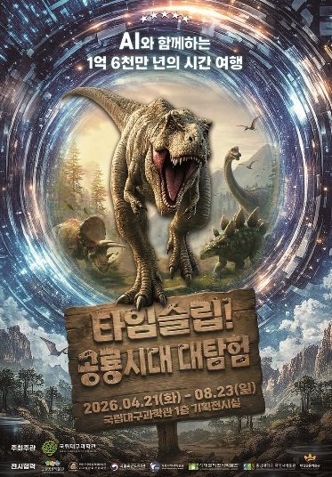 (포탈뉴스통신) 국립대구과학관은 2026년 특별기획전 ‘타임슬립! 공룡시대 대탐험’을 4월 21일부터 8월 23일까지 국립대구과학관 1층 기획전시실에서 개최한다.