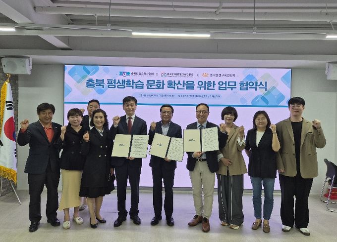 세 기관은 이번 협약을 통해 ▲도민 평생교육 프로그램 공동 기획 및 운영 ▲평생교육사 및 현장 실무자 역량 강화 연수 ▲충북형 평생교육 정책 발굴 및 공동 학술대회 개최 ▲인적·물적 자원 공유 등 충북 평생학습 문화 확산을 위해 적극 협력하기로 했다.