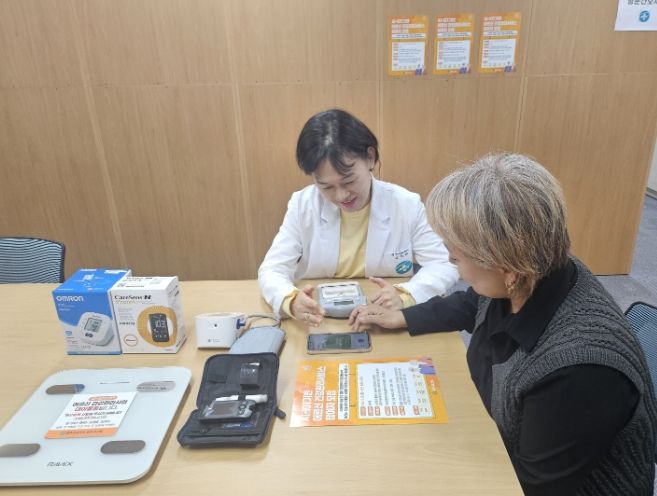 이 사업은 스마트폰 ‘오늘건강’ 앱과 혈압계, 혈당계 등 건강관리 기기를 활용해 어르신이 일상에서 스스로 건강을 관리할 수 있도록 돕는 비대면 건강관리 서비스이다.