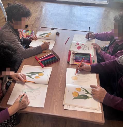 집중력 향상과 소근육 기능 활성화에 효과적인 치매 예방 인지학습지(컬러링북)를 적극 활용하고, 과거의 기억을 떠올리며 뇌를 자극하는 회상 중심의 인지 활동을 통해 어르신들의 기억력 감퇴 예방과 정서적 교감을 돕고 있다.