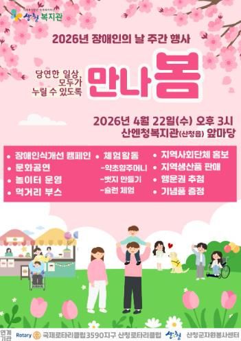 윤숙이 산엔청복지관장은 “이번 행사가 주민 모두가 서로를 이해하고 공감하는 계기가 되기를 기대한다”며 “장애인과 비장애인이 함께 어우러지는 뜻깊은 자리에 많은 관심과 참여 바란다”고 말했다.