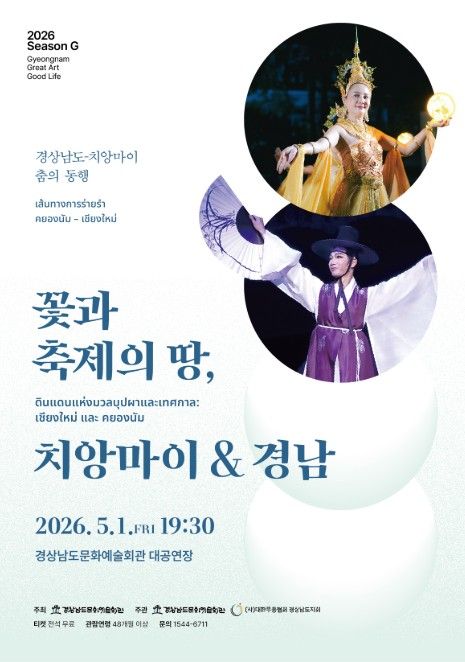(포탈뉴스통신) 경상남도문화예술회관은 5월 1일 오후 7시 30분 대공연장에서 '경상남도-치앙마이 춤의 동행 ‘꽃과 축제의 땅, 치앙마이 & 경남’' 공연을 개최한다고 밝혔다.