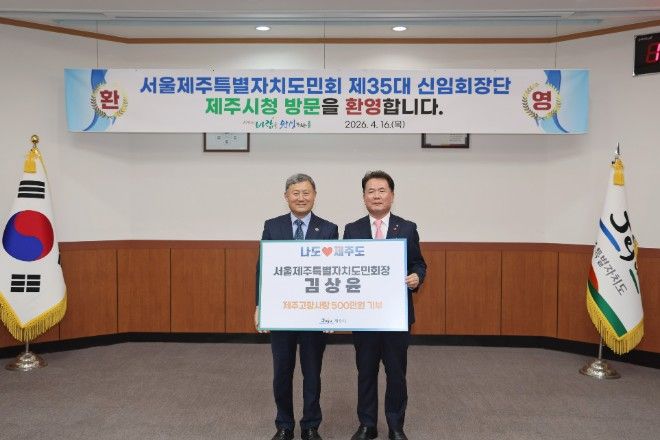 이날 기탁식은 김완근 제주시장과 서울제주특별자치도민회 회장단이 함께한 가운데 진행됐으며, 고향에 대한 따뜻한 마음과 애정을 나누는 뜻깊은 자리로 마련됐다.