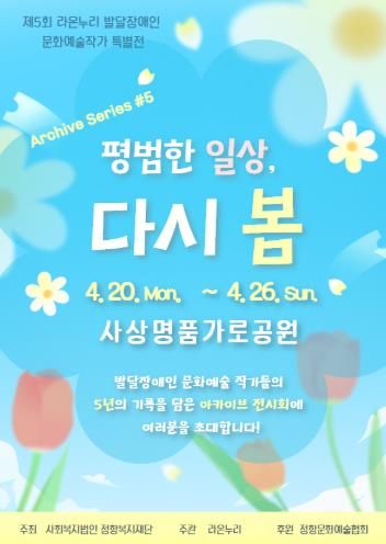 (포탈뉴스통신) 부산 사상구는 장애인거주시설 라온누리(엄궁동)가 오는 4월 20일부터 26일까지 사상 명품가로공원 일대에서 제5회 라온누리 발달장애인 문화예술 작가 특별전 ‘평범한 일상, 다시 봄’을 개최한다고 밝혔다.