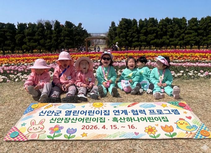 (포탈뉴스통신) 신안군 국공립 어린이집인 흑산하나어린이집과 신안장산어린이집이 4월 15일부터 16일까지 1박 2일 일정으로 임자면 ‘2026 섬 튤립축제’를 방문하고, 열린어린이집 간 연계·협력 공동 캠핑 프로그램을 운영했다.